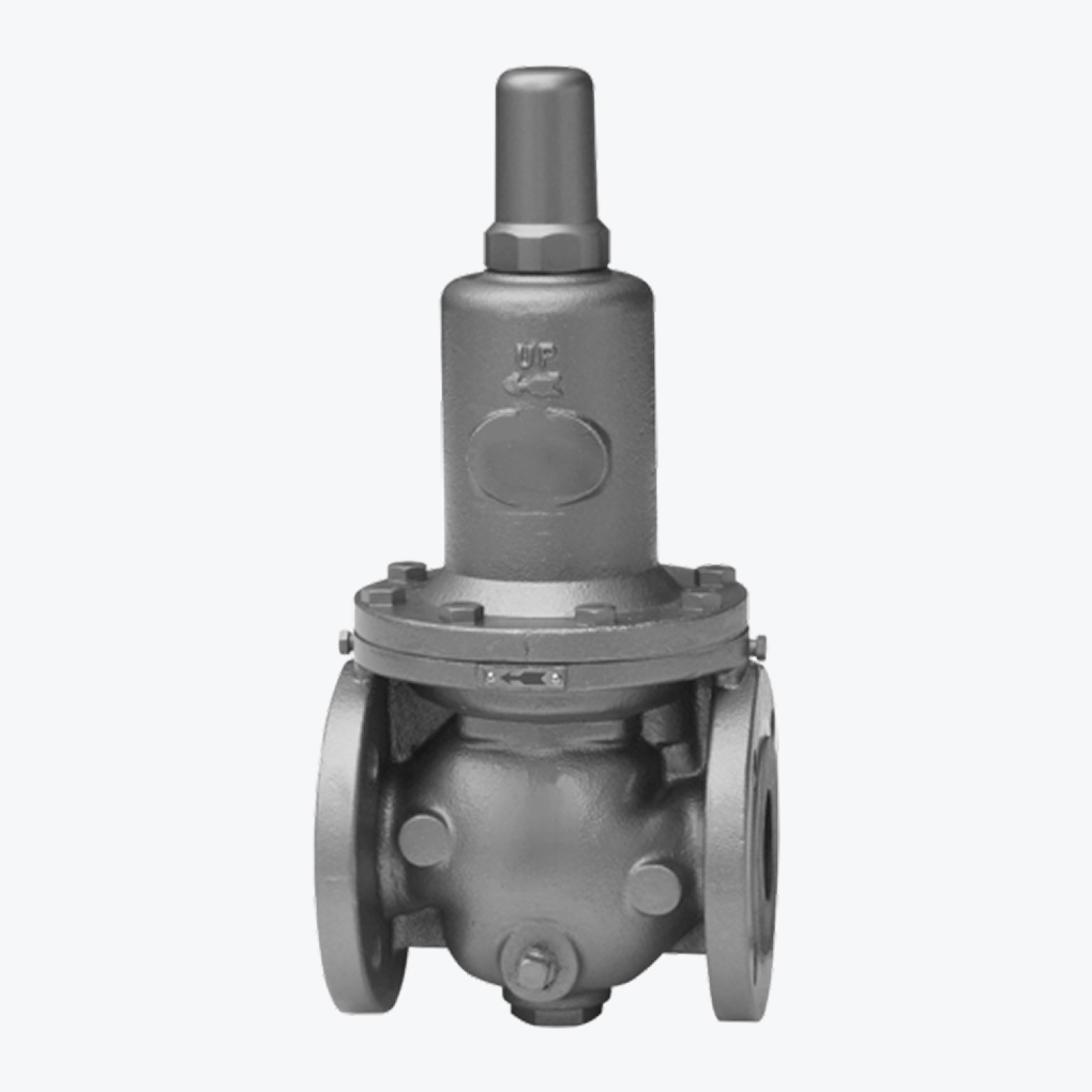 The single-port design, large diaphragm area, light-rate springs, and soft disc material contribute to low lock-up pressure. Anti-cavitation or low-noise trims help prevent erosion, vibration, and noise. The SWR-NP series features quick-change trims for easy maintenance and durability. This compact, cost-effective valve is suitable for water and air applications, with a wide adjustment range for controlling low flow rates. Various springs allow for pressure adjustments without needing to remove the valve from the piping, and the rubber disc ensures leak prevention.